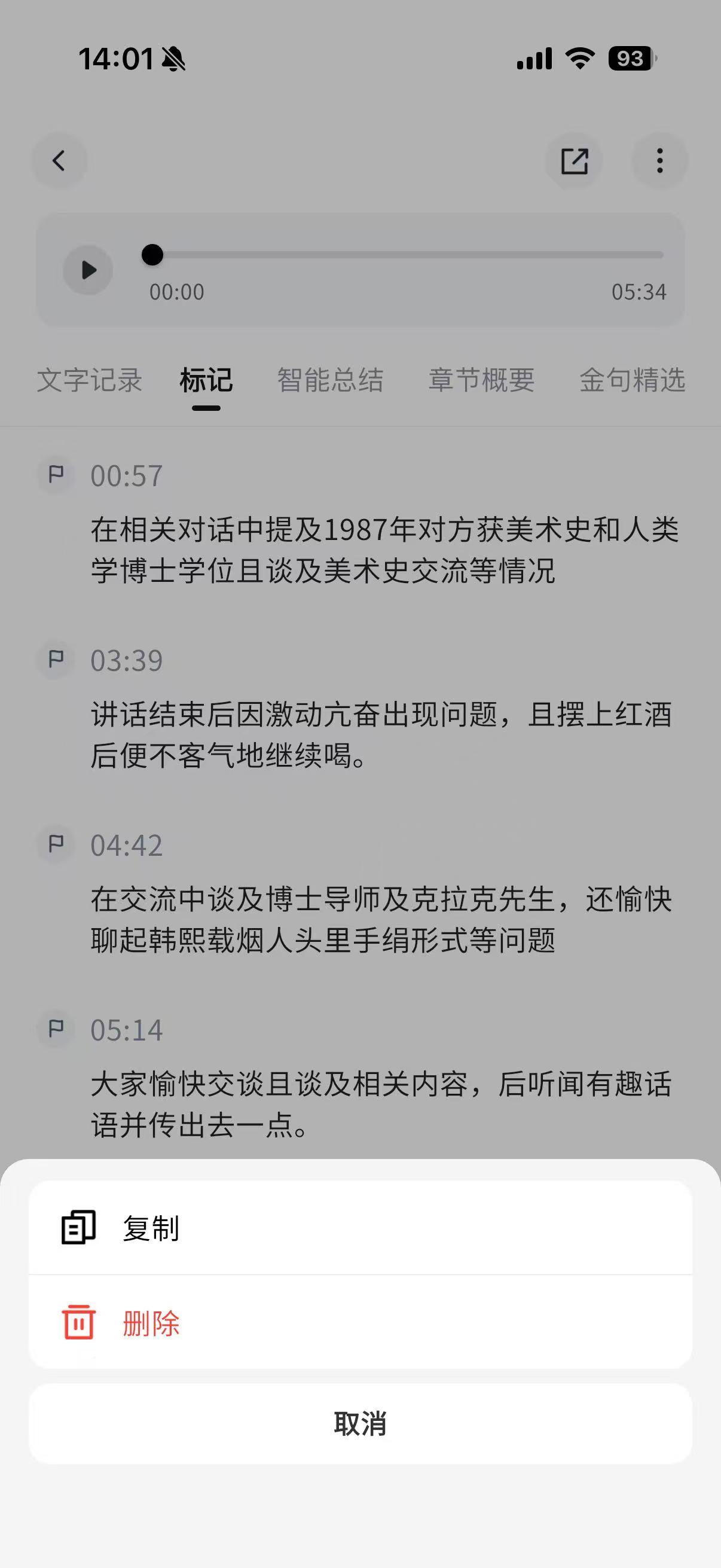 - 长按标记的文字区域,可以进行复制、删除操作