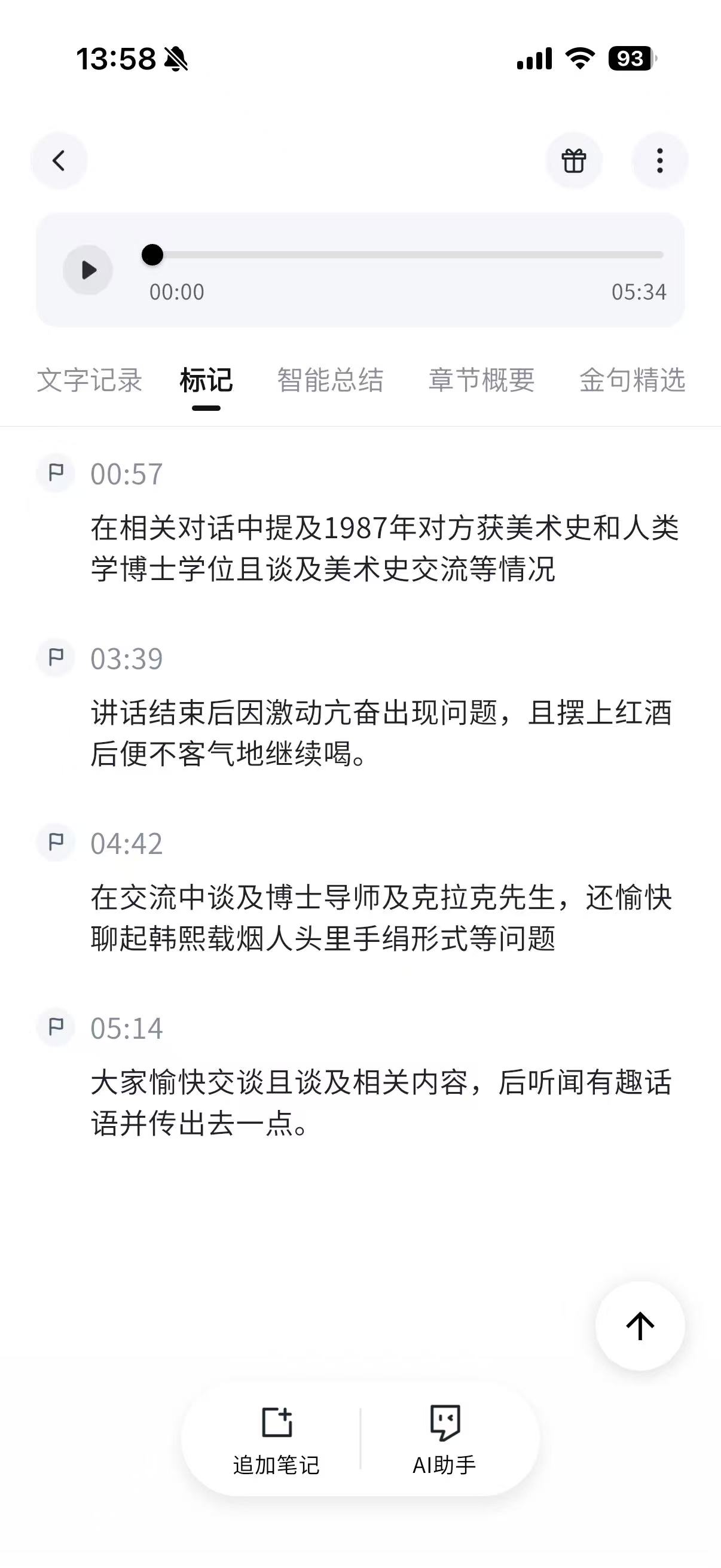 - 会后,AI 自动生成所有 MARK 时刻的重点摘要,方便查看回顾