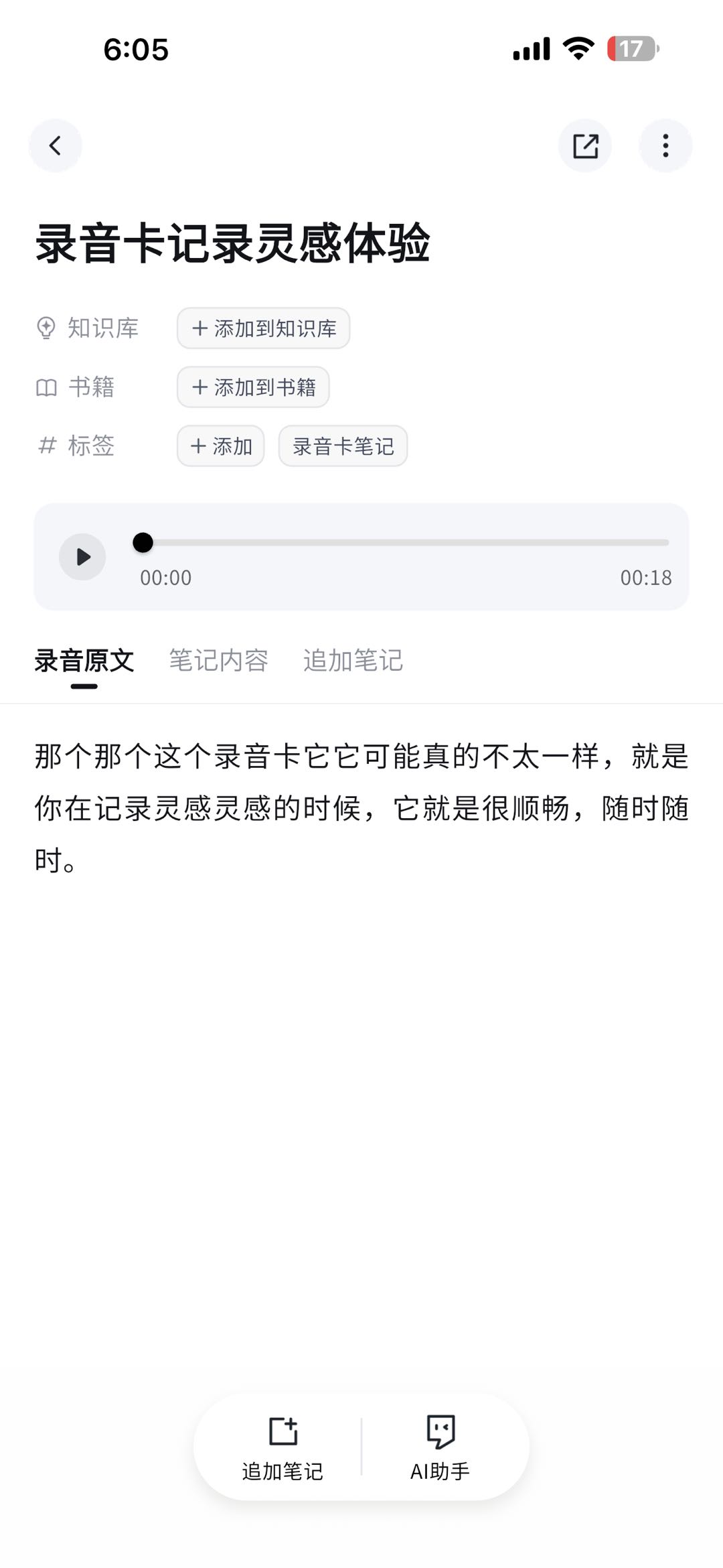 - 长按录音卡 MARK 键,快速记录灵感,松开即可生成闪念笔记