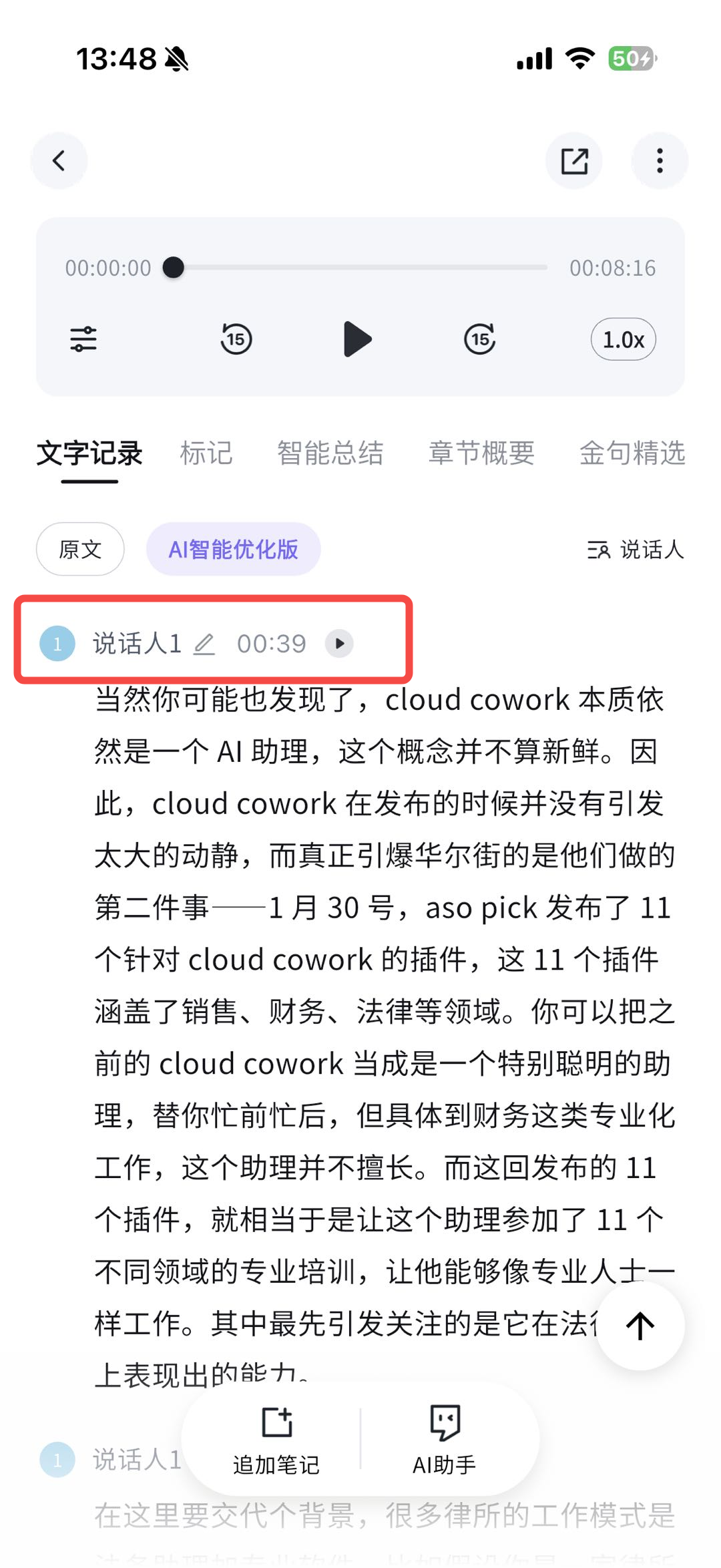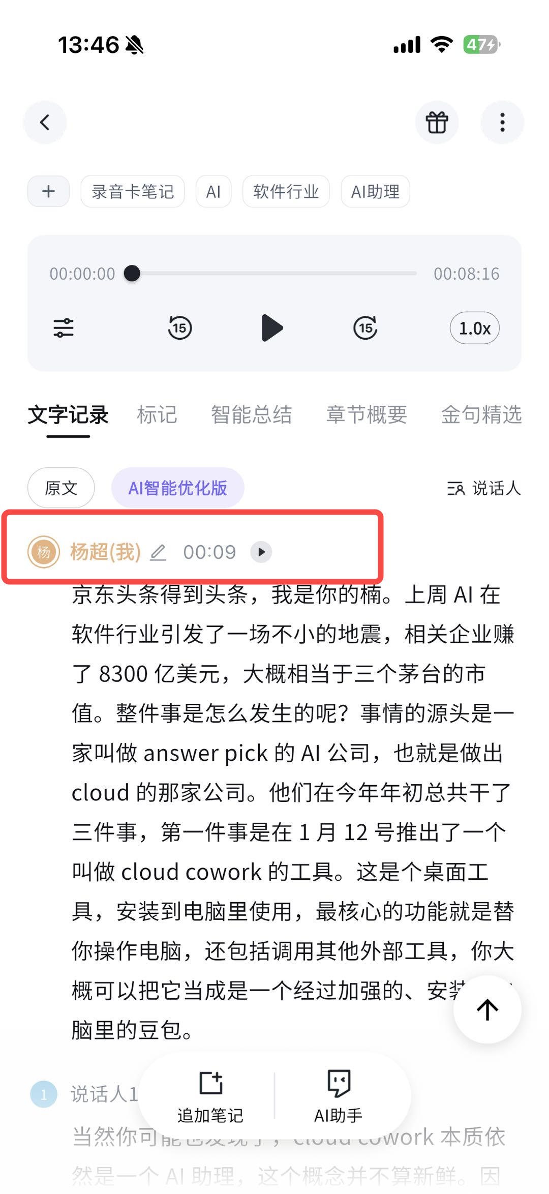 录音转写自动标记「你说的话」,多人对话一目了然